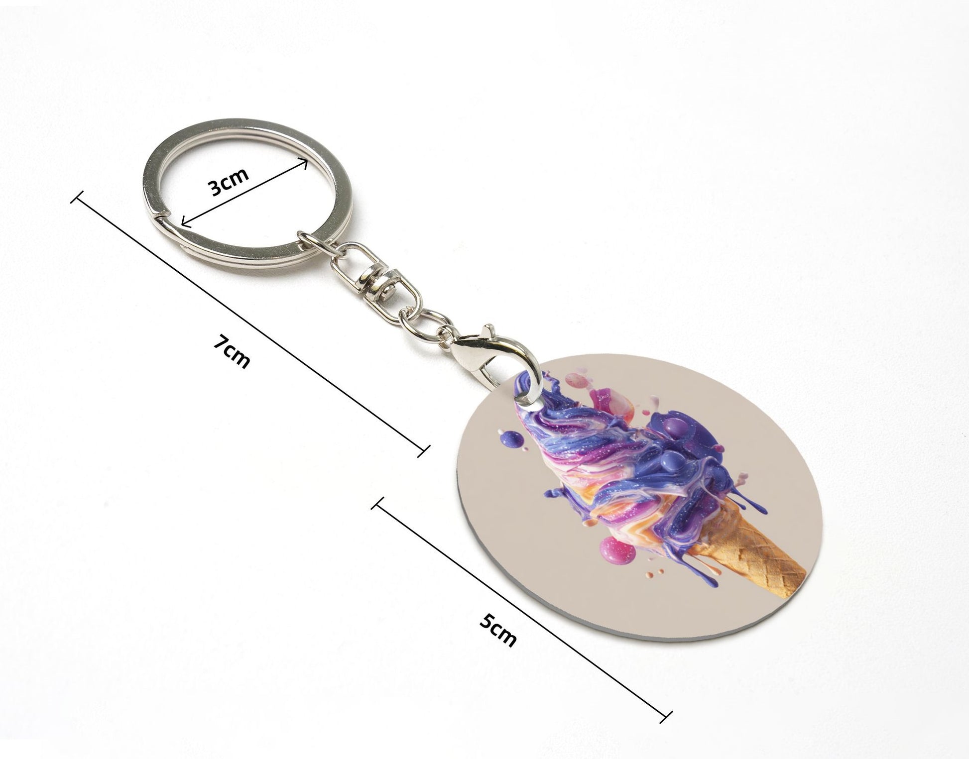 Dreamy Purple Ice - Cream Round Metal Keychain (Approx. 7cm×5cm×3cm )