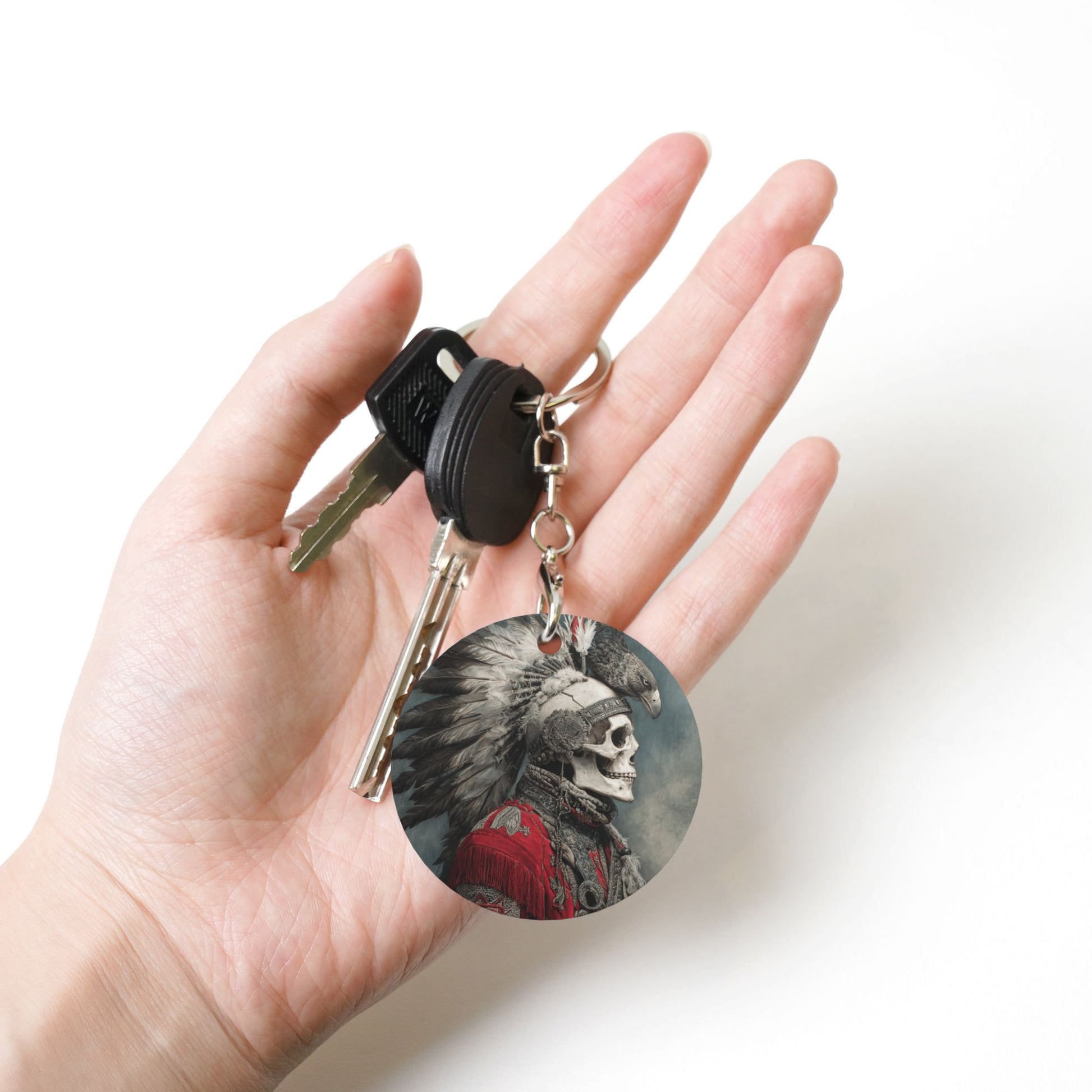 This round metal keychain cleverly presents the vintage Indian style, being a small item that combines personality and practicality. With an overall size of approximately 7cm×5cm×3cm, it fits various keys well, not being bulky when hung on them, and is easy to carry and store in daily life. The key ring and chain links are made of exquisite metal materials, which are rust - proof and wear - resistant, withstanding repeated opening and closing and the wear of daily use, and can accompany your keys for a long time. The main body of the keychain is a lightweight aluminum pendant, which is light in texture but has good wear resistance. The vintage Indian - style pattern on the front is rich in details and has calm colors, restoring a unique artistic charm; the back is simple and clean, allowing you to mark small information as you like. Whether paired with home keys, car keys, or used as a small pendant to decorate a backpack or wallet, it can blend in naturally, adding a unique charm that combines vintage and wildness to your personal items. Every time you take the keys, this keychain can become a small identifier that showcases personal aesthetics and preferences, making daily travel have more beautiful associations about freedom and vintage because of this unique small item, accompanying you to start every journey, whether ordinary or wonderful.
