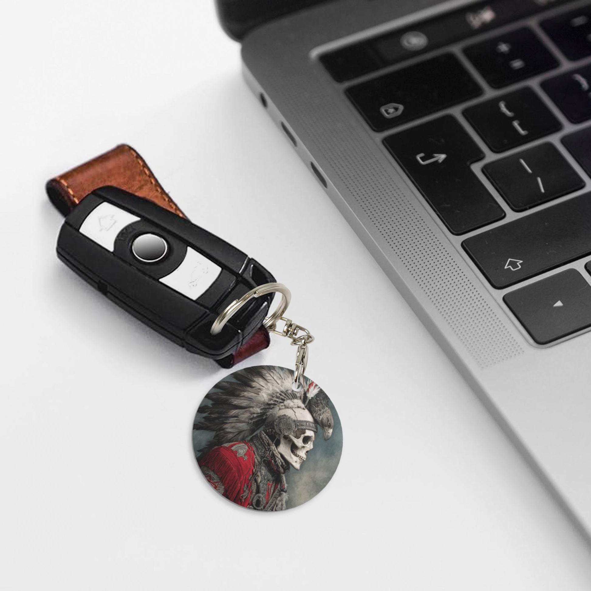 Vintage Indian - Style Round Metal Keychain (Approx. 7cm×5cm×3cm in Size )